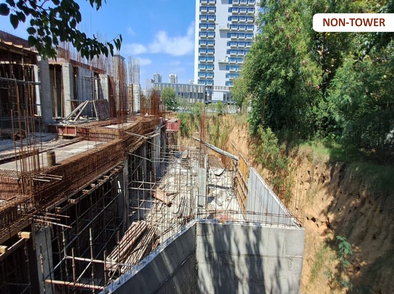 Non-Tower 20% Completed & Lower Basement Exit Ramp Shuttering Work in Progress.